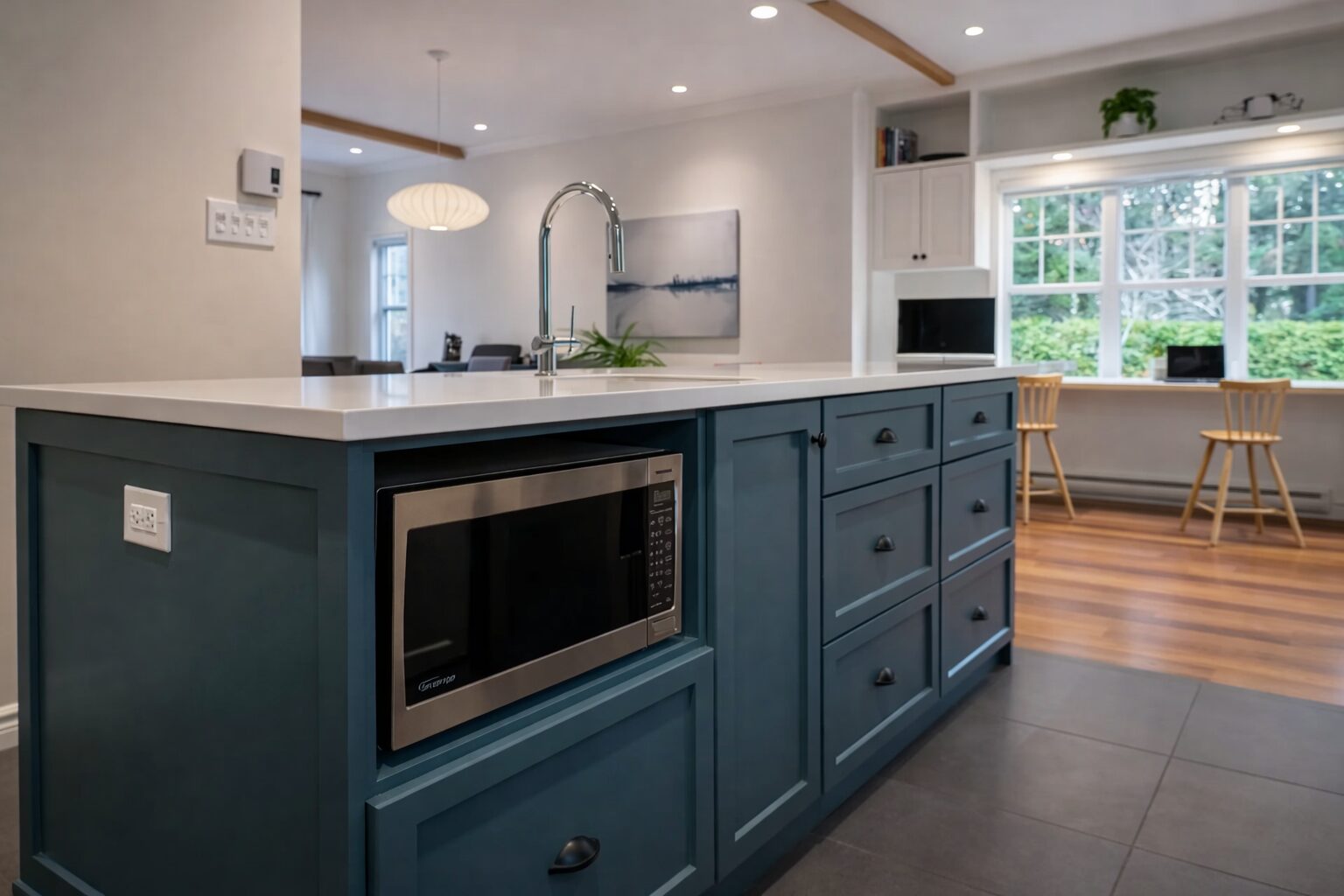 Aménager un coin bureau pour les devoirs des enfants et le télétravail, reconfigurer la cuisine de telle sorte que tous les membres de la famille puissent s’y trouver en même temps, ajouter une véranda pour agrandir l’espace commun.