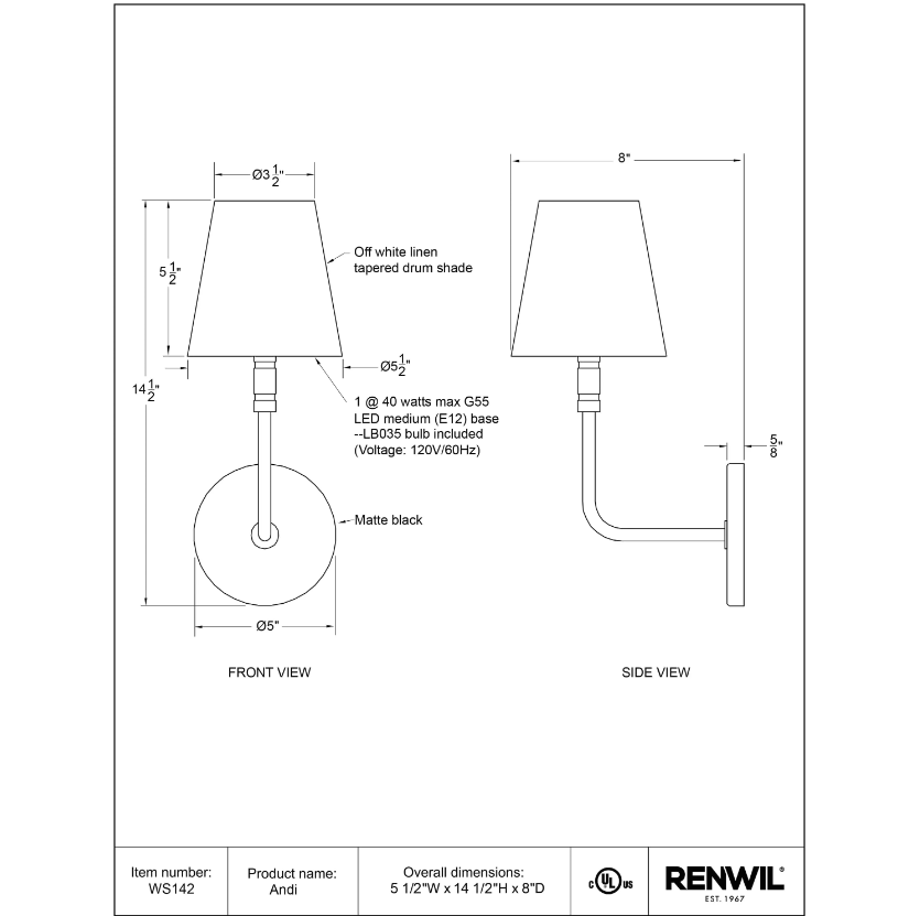 | Dimension | 5.5"W X 14.5"H X 8"D |