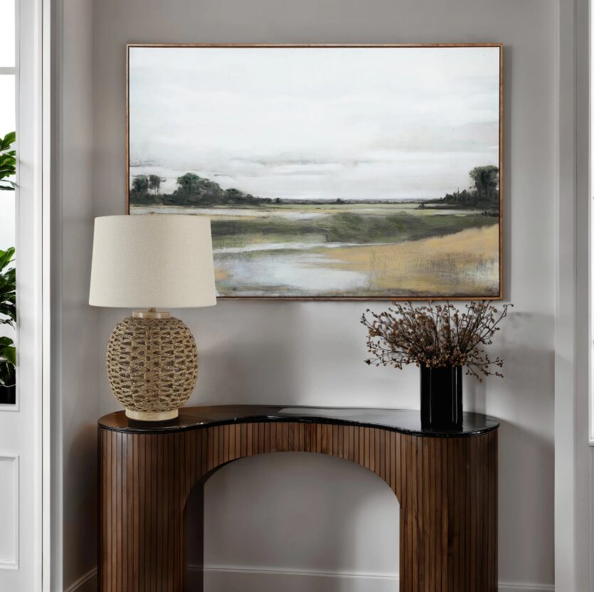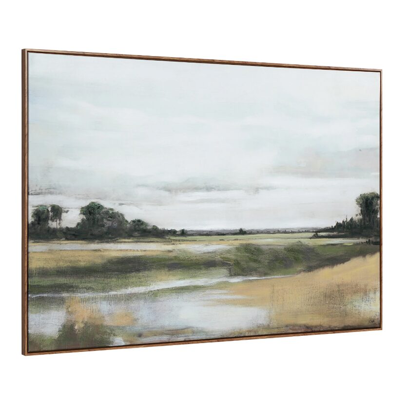 Exprimez votre goût impeccable avec grandeur avec cet élégant tableau paysager. Offrant un mélange d’abstrait remodernisé et de charme ancien, des accents peints à la main l’animeront dans son cadre de haute qualité. Idéal comme touche finale à votre décor, il saura rehausser l’atmosphère de la pièce.