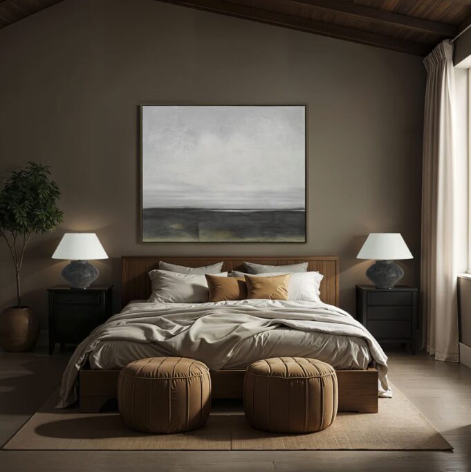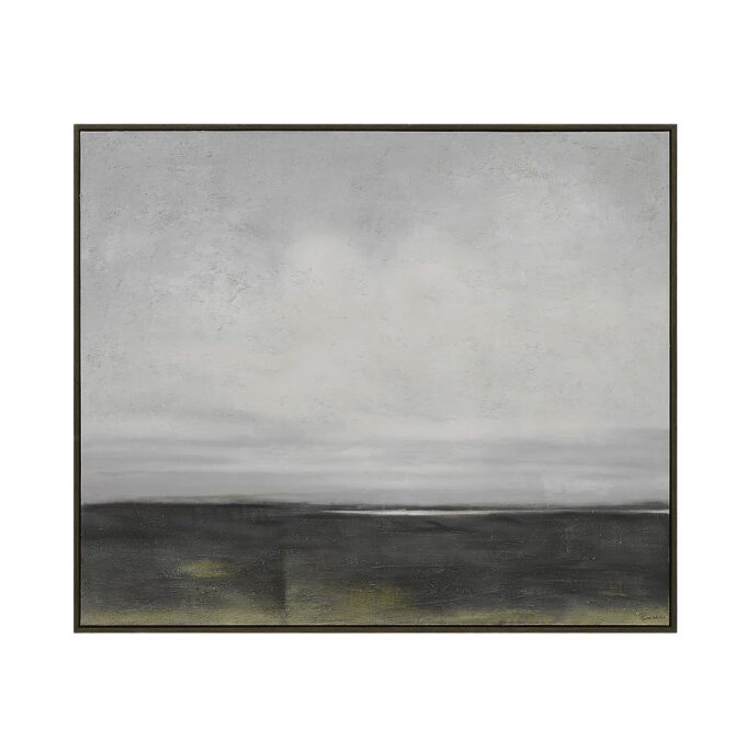 Introduisez une ambiance calme et artistique dans n’importe quelle pièce avec la toile de paysage Cielo. Des couches douces et peintes à la main traversent la pièce, enrichies par une texture délicate et des touches de feuille d’or qui donnent une dimension et un éclat subtils. Situé dans un cadre en chêne noir élégant, cette œuvre d’art allie élégance moderne et chaleur organique, ce qui en fait un élément se démarque dans les intérieurs de transition.
