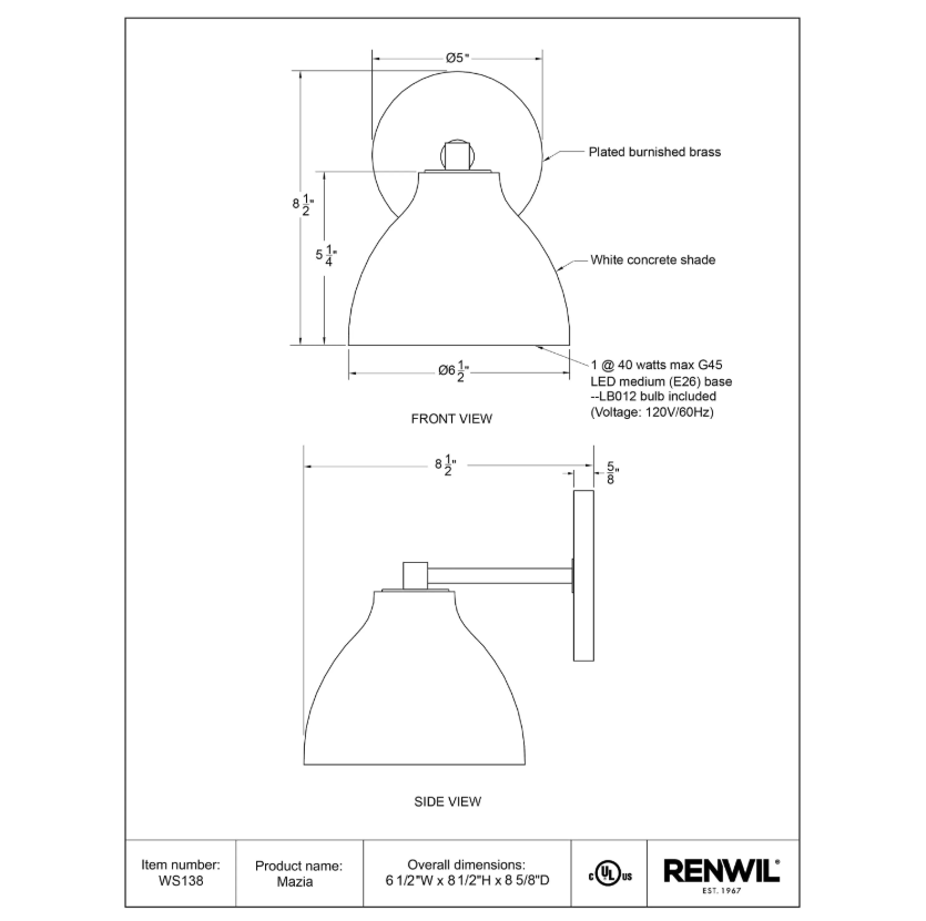 Conférez à votre intérieur une touche d’élégance avec l’applique murale Mazia en laiton bruni. Elle accueillera de façon transparente à une ampoule avec culot de type E26 standard, et sa plaque murale en fer robuste garantit une installation stable et sécuritaire du luminaire. Pouvant prendre en charge des ampoules d’une puissance maximale de 40 W, elle sera compatible avec un large éventail d’options d’éclairage. De plus, il est recommandé d’utiliser une ampoule de type LB012 pour améliorer son rendement, alors que l’installation câblée ajoutera à sa fiabilité.