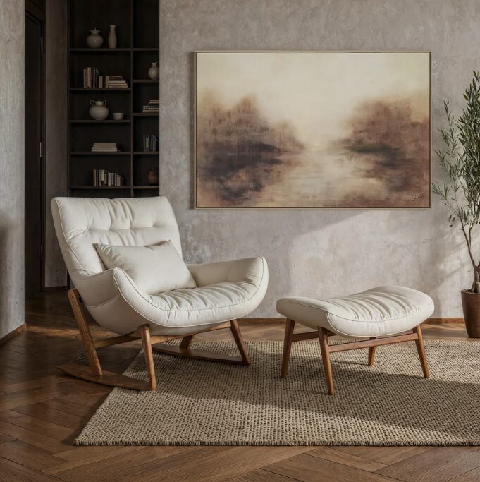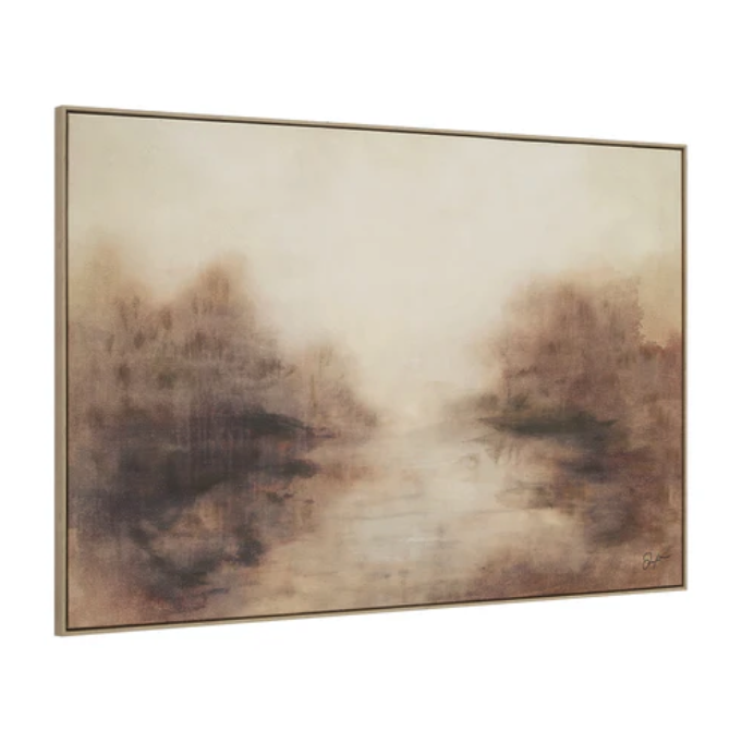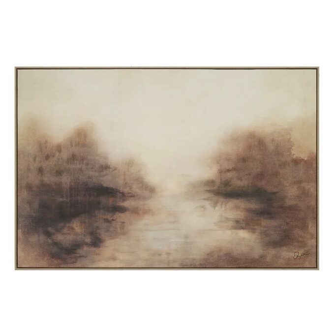 Introduisez une ambiance subtile mais convaincante dans n’importe quel espace avec la toile Onda. Sa palette brumeuse et ses accents de gel en couches réinterprètent le paysage classique avec un côté contemporain, créant une pièce à la fois sereine et intrigante. Encadré en bois clair pour une finition propre et moderne, il apporte de la texture, de la profondeur et un sens poli de l’art aux intérieurs axés sur le design.